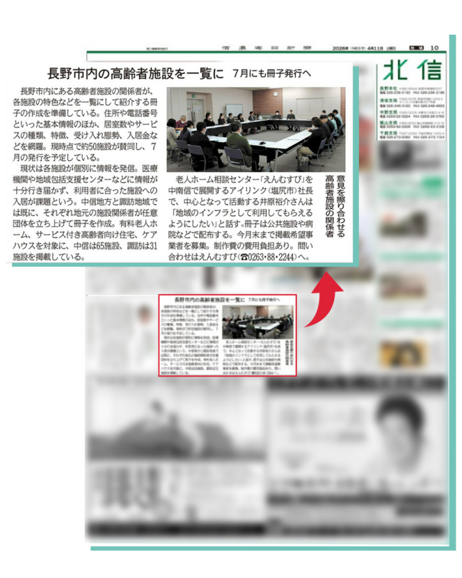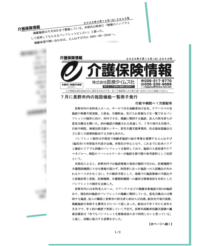 長野市内の有料老人ホーム・サービス付き高齢者向け住宅・ケアハウスなどを対象にした連合パンフレットを制作することとなりました。